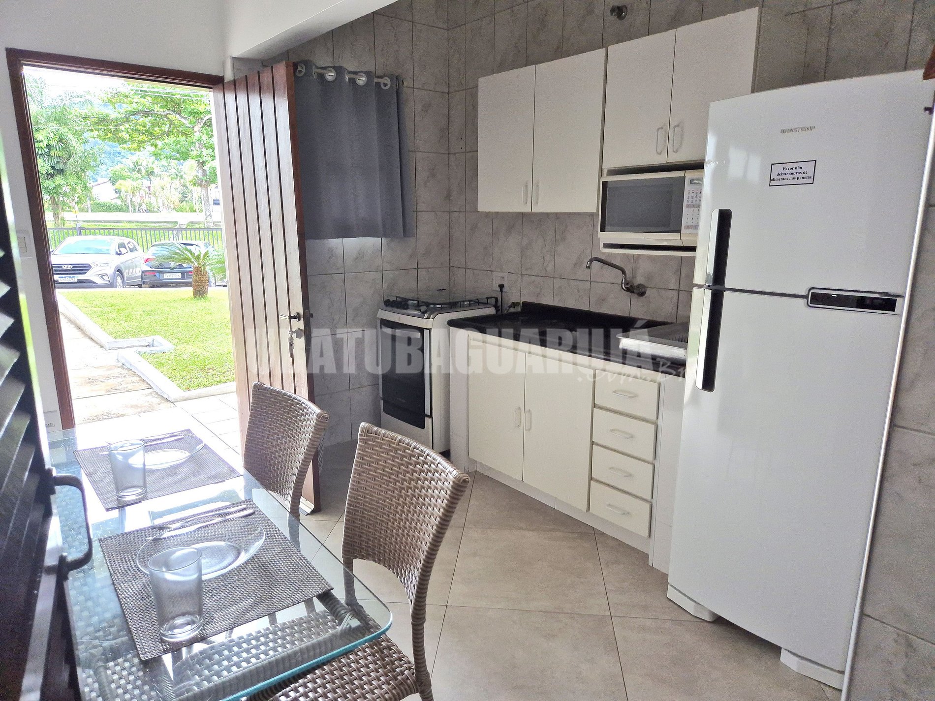 Cozinha com geladeira duplex frost-free, fogão, micro-ondas, liquidificador, utensílios de cozinha completo.